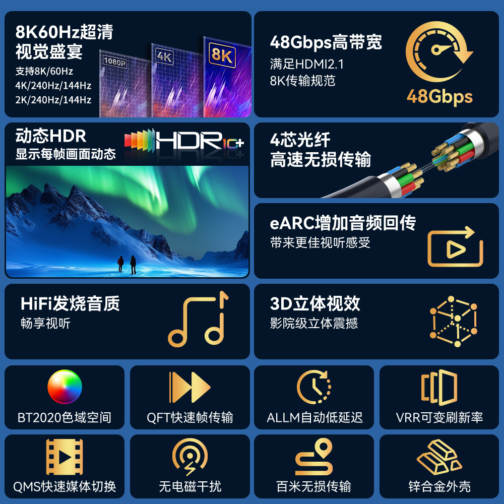 产品名称:分离式光纤HDMI线2.0版4k60Hz视频连接线