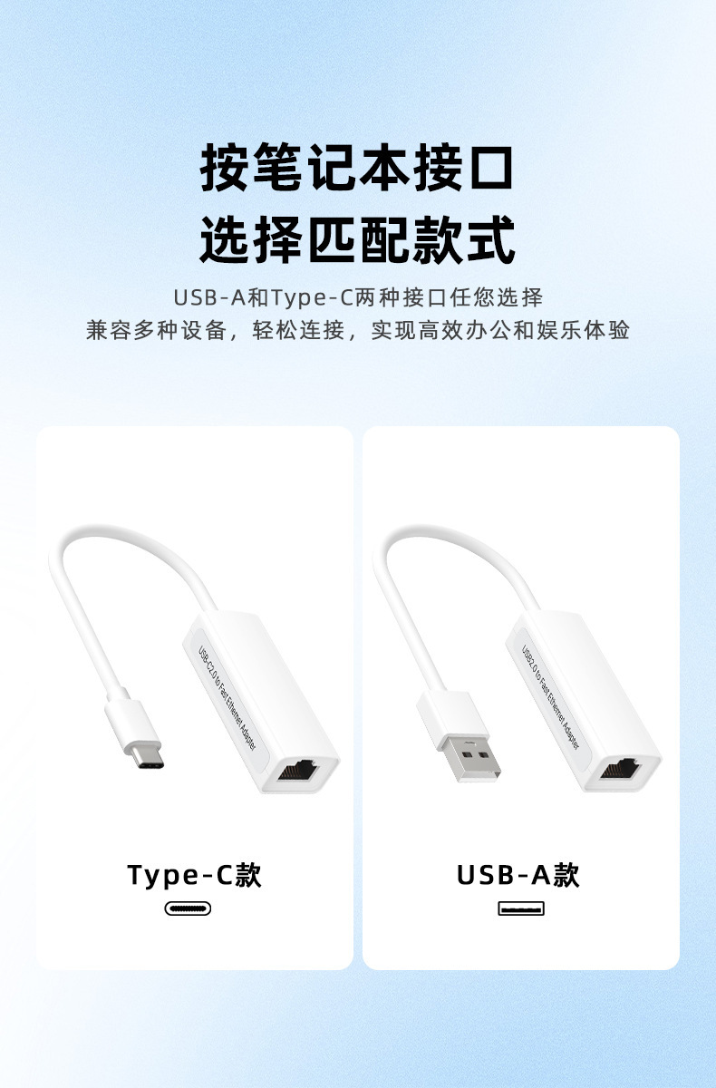 接口:USB-A转rj45网口,也可换成Type-C接口款