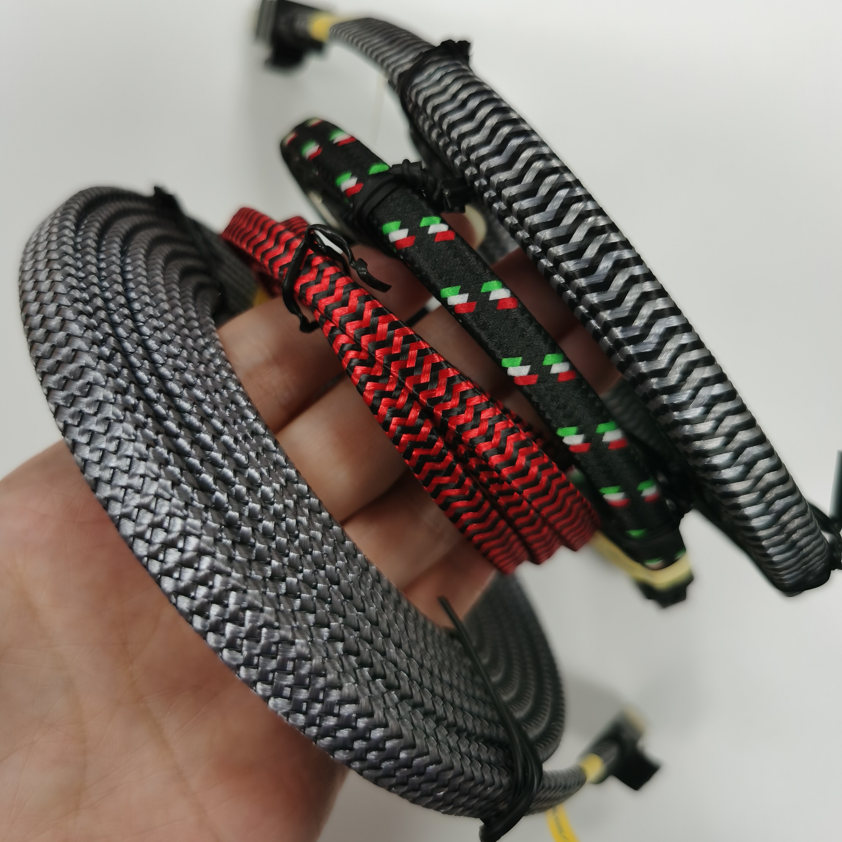 网线外部编织,除了提供美观外,还可起到耐磨损、提高抗拉强度、摇摆次数、防火(符合UL1581 VW-1)、防水、防油等实际功能。不仅仅是外观靓丽,更多的是一种在电线艺术开发的创意!