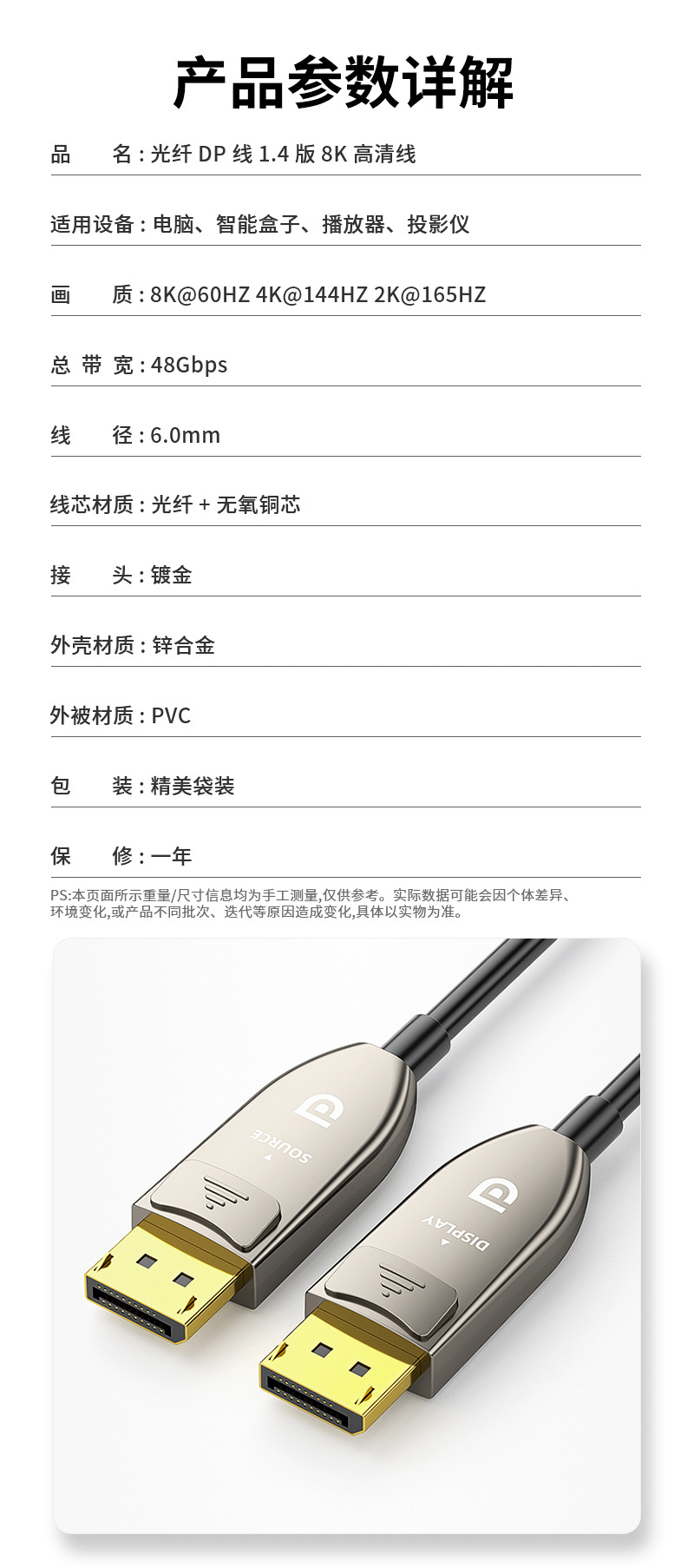 产品名称:DP线1.4版高清视频连接线