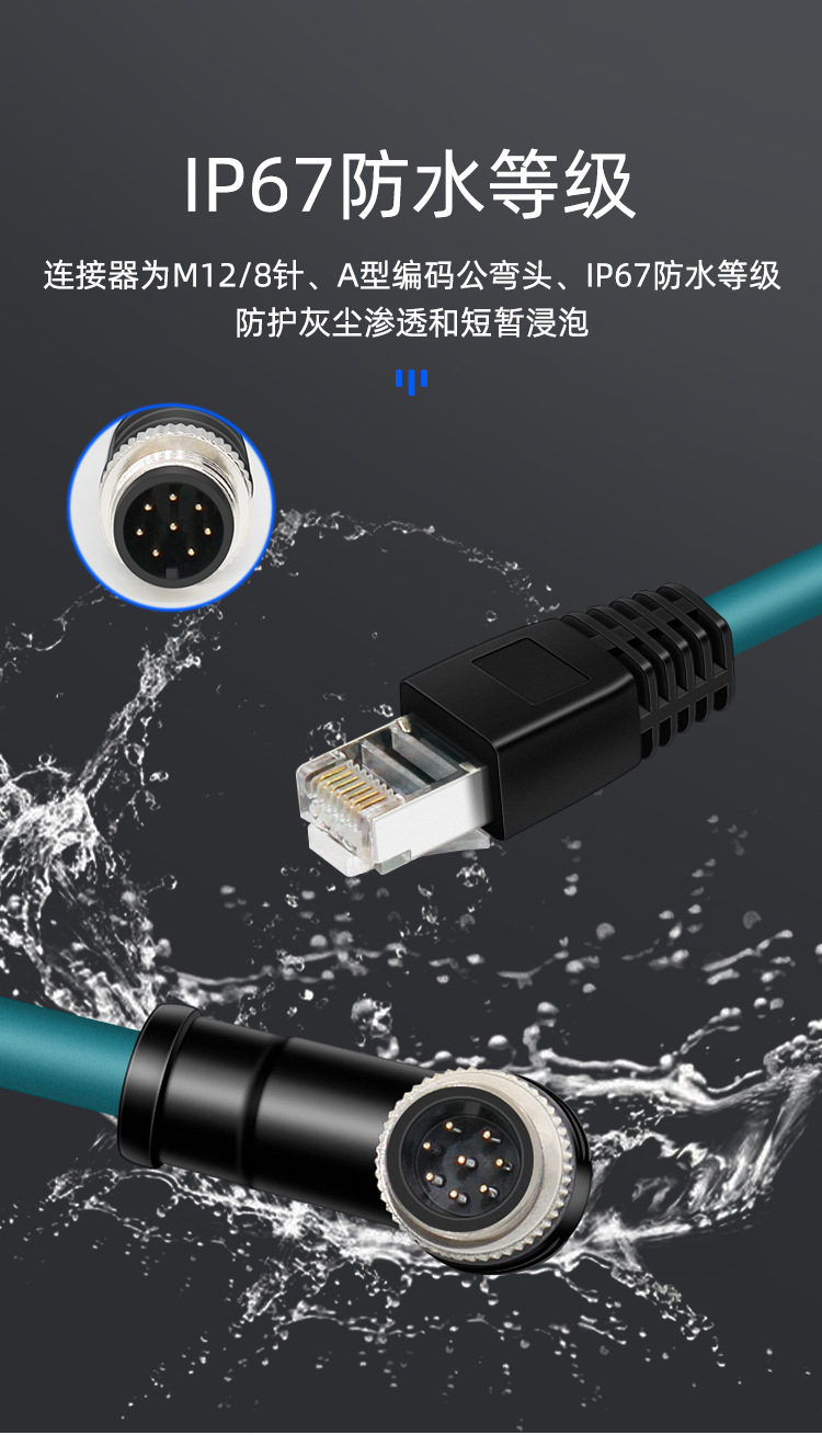 深圳M12 8针弯公头A转RJ45拖链网线